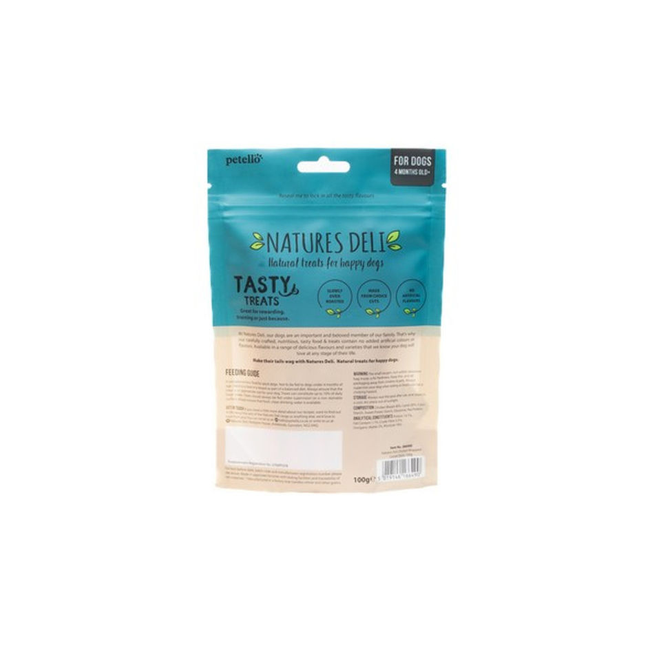 Natures Deli Carrot Wrapped Chicken 100g. A Big Hello from Petello! We make natural treats for happy dogs. They're healthily balanced, naturally nutritious and delicious, which is why we called them Natures Deli.Recommended For Dogs over 2 months.