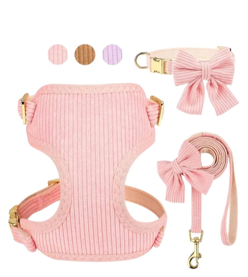 Soft Dog Harness, Lead, Collar & Bow Baby Pink S